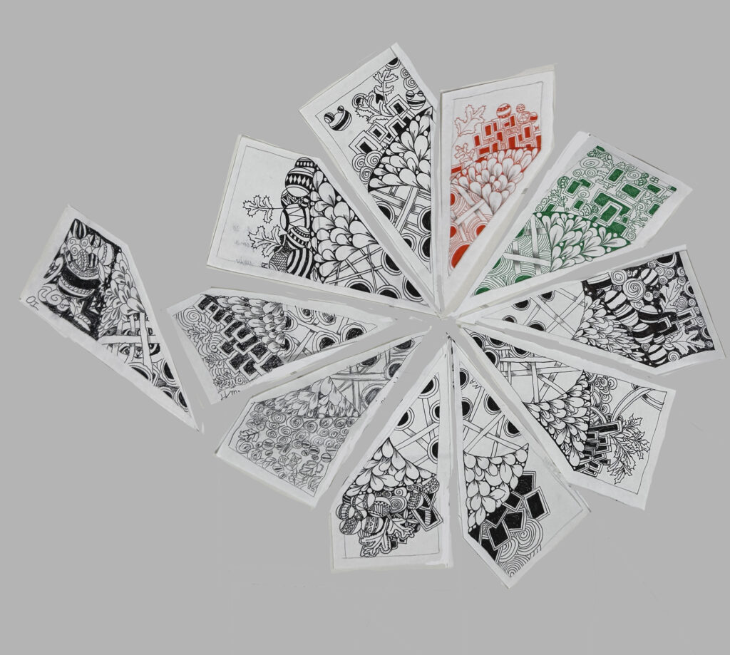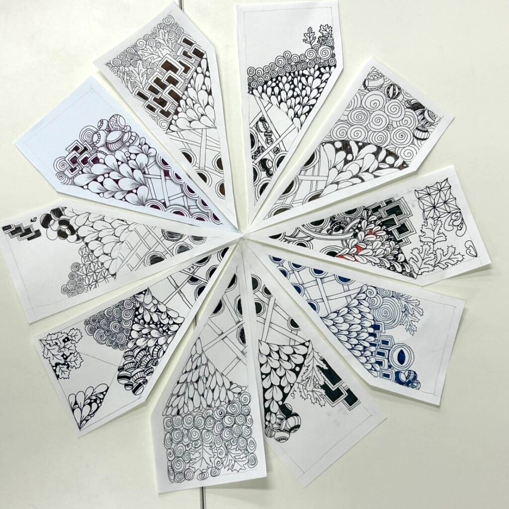 最初はクレセントムーン、次にフラックス、ホリバー、ジェッティーズ。そのあとはいくつかのタングルから自由に選んで描いてもらいました。